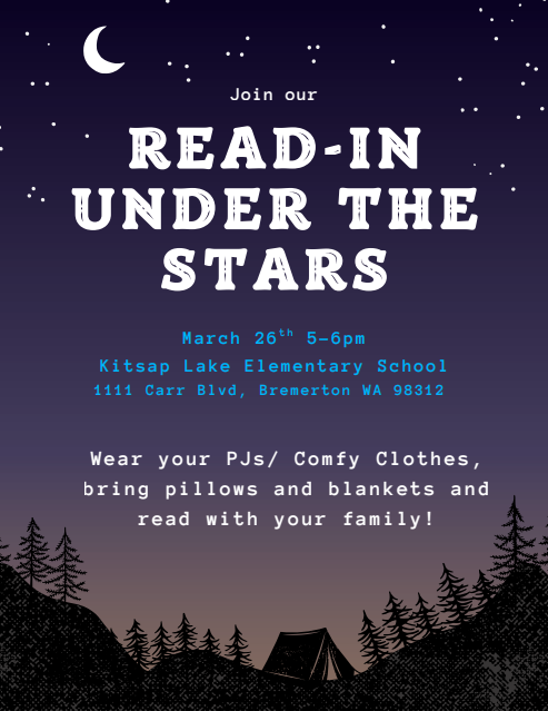 We are excited to host KLE’s Read-In Under the STARS this Thursday from 5:00–6:00 PM! To celebrate, our spirit day during the school day will be Bremerton High School colors (blue and gold) to supp...